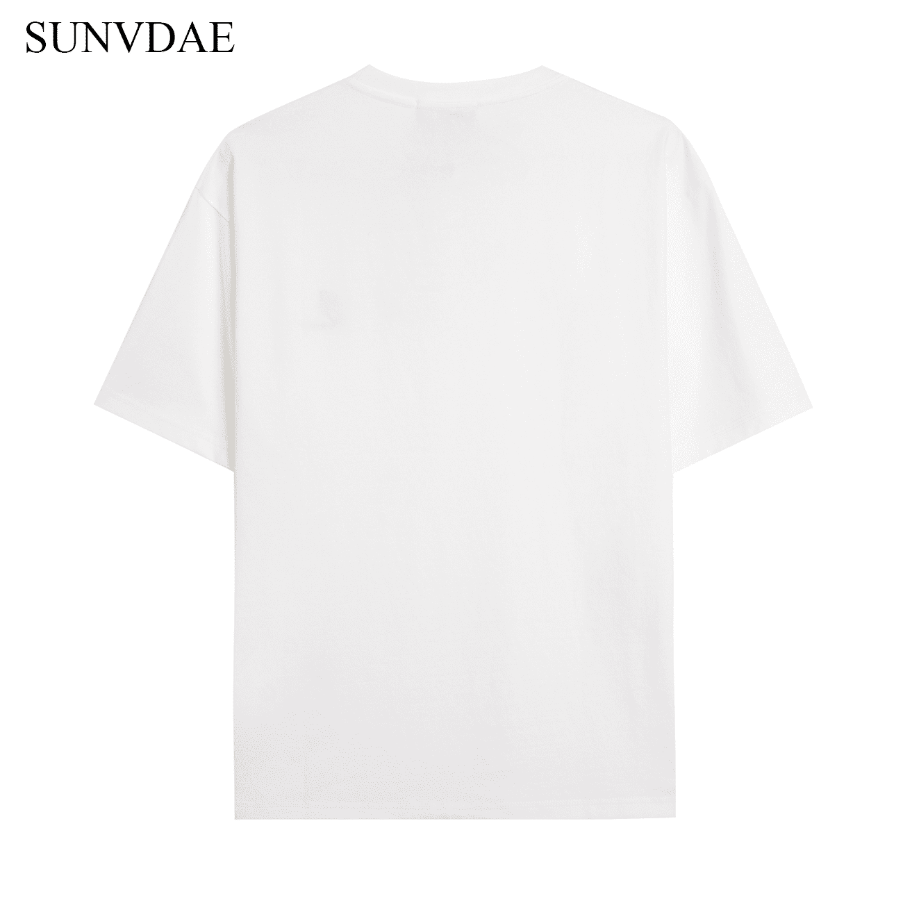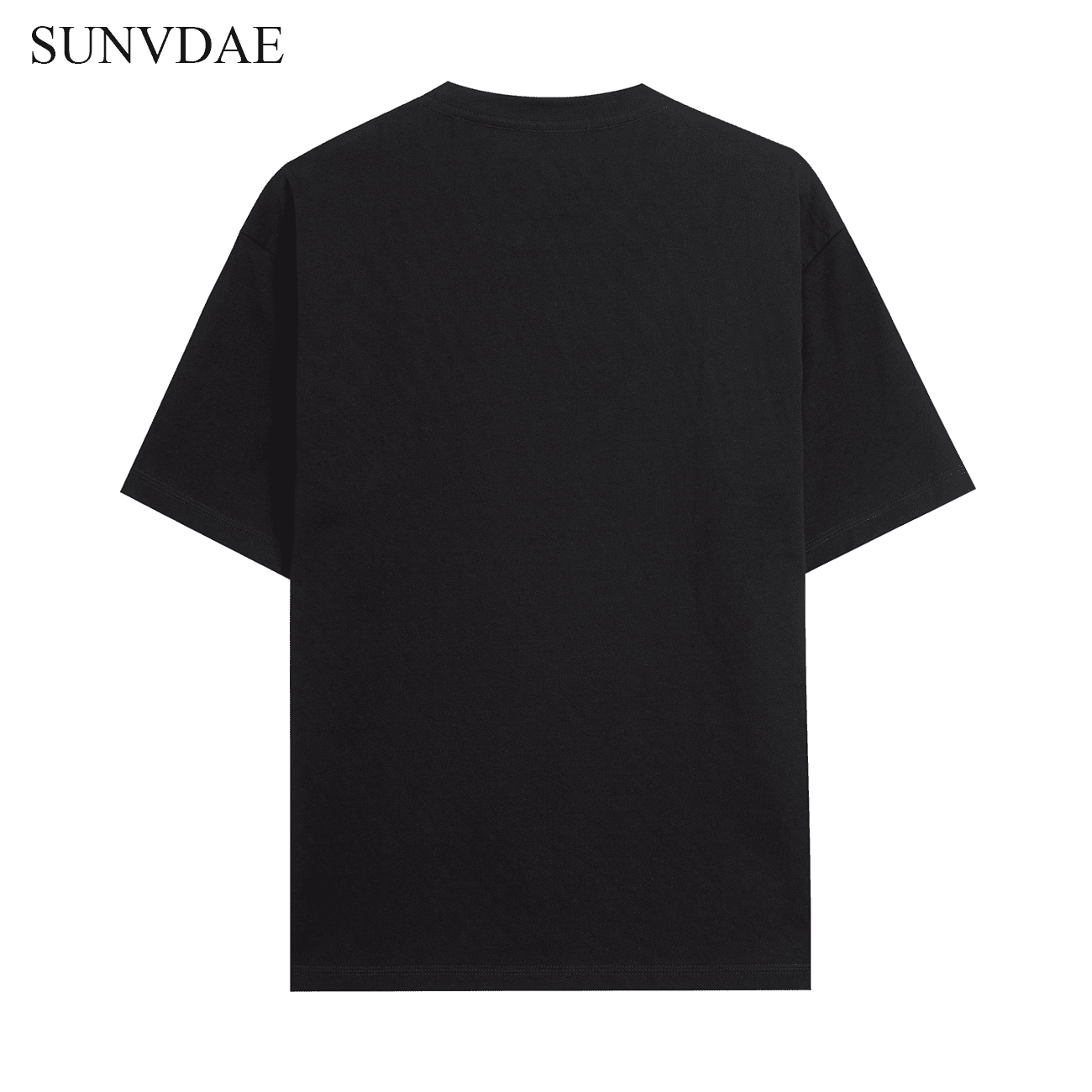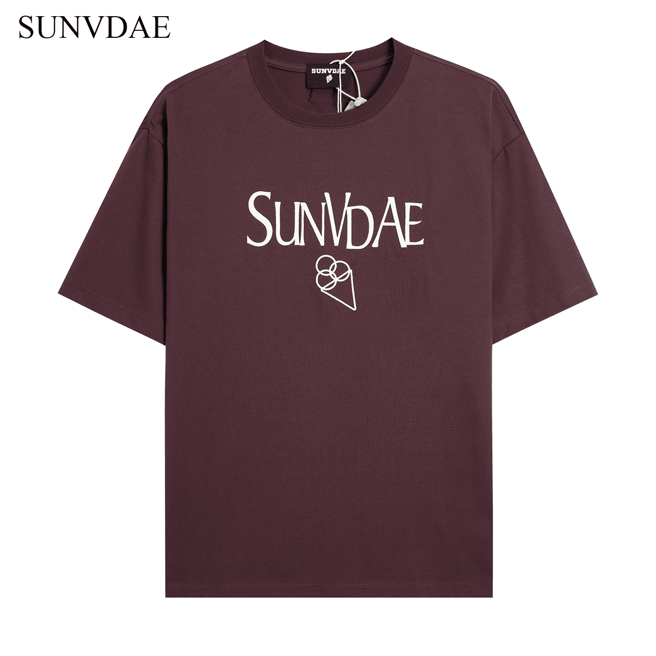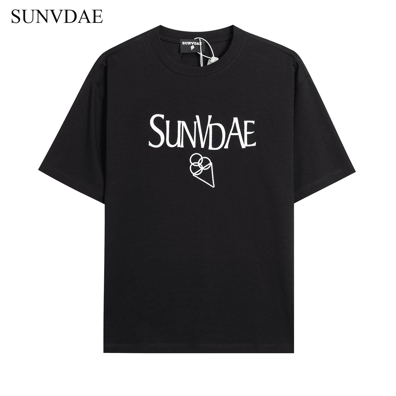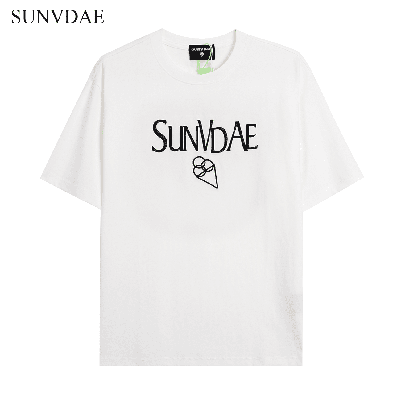 - SUNVDAE 夏季新款潮牌 不規則刺繡LOGO 字母圓領T恤 潮流百搭簡約寬鬆男女同款